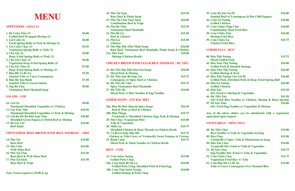 As you step inside this casual yet inviting space, you’re met with the delightful aroma of spices wafting through the air. Pho Minh is perfect for both intimate dinners and larger gatherings, making it a great choice for a casual lunch or dinner with friends and family. Its outdoor seating options, including heated and covered areas, allow you to enjoy your meal al fresco, adding a charming touch to your dining experience.